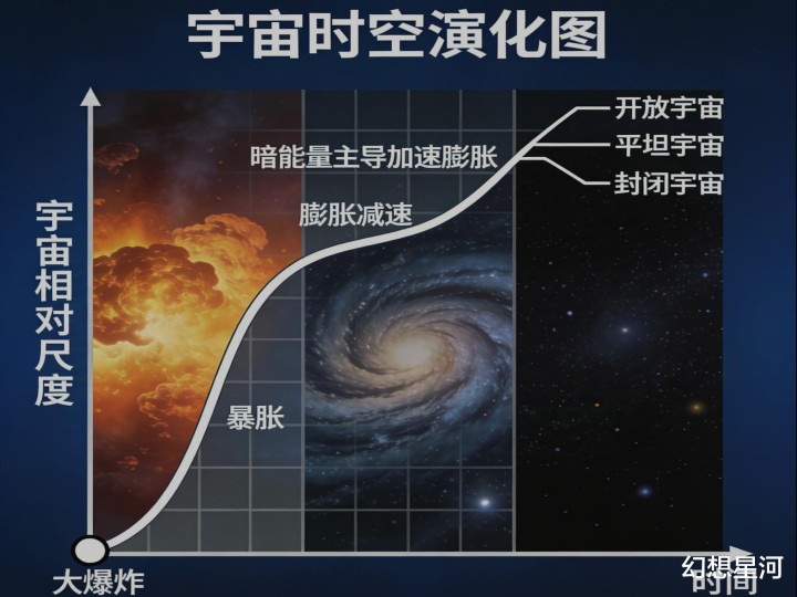 那些超出可观测范围的区域,要么是它们发出的光还没来得及飞到地球,要么是空间膨胀的速度超过了光速,那些光永远没有机会抵达我们眼中。无数未知的区域藏在我们的视线之外,我们能感知到的宇宙,只是整个宇宙中一个小小的可见角落。宇宙的膨胀还不算最神奇的,早期宇宙还经历过一次更极端的暴胀阶段。在大爆炸后的10⁻³⁶秒到10⁻³²秒之间,短短一瞬间,空间尺度就至少扩大了10²⁶倍。